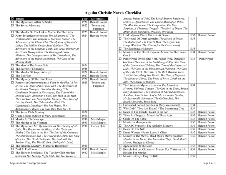 Agatha Christie Books In Order Printable List Dev Onallcylinders