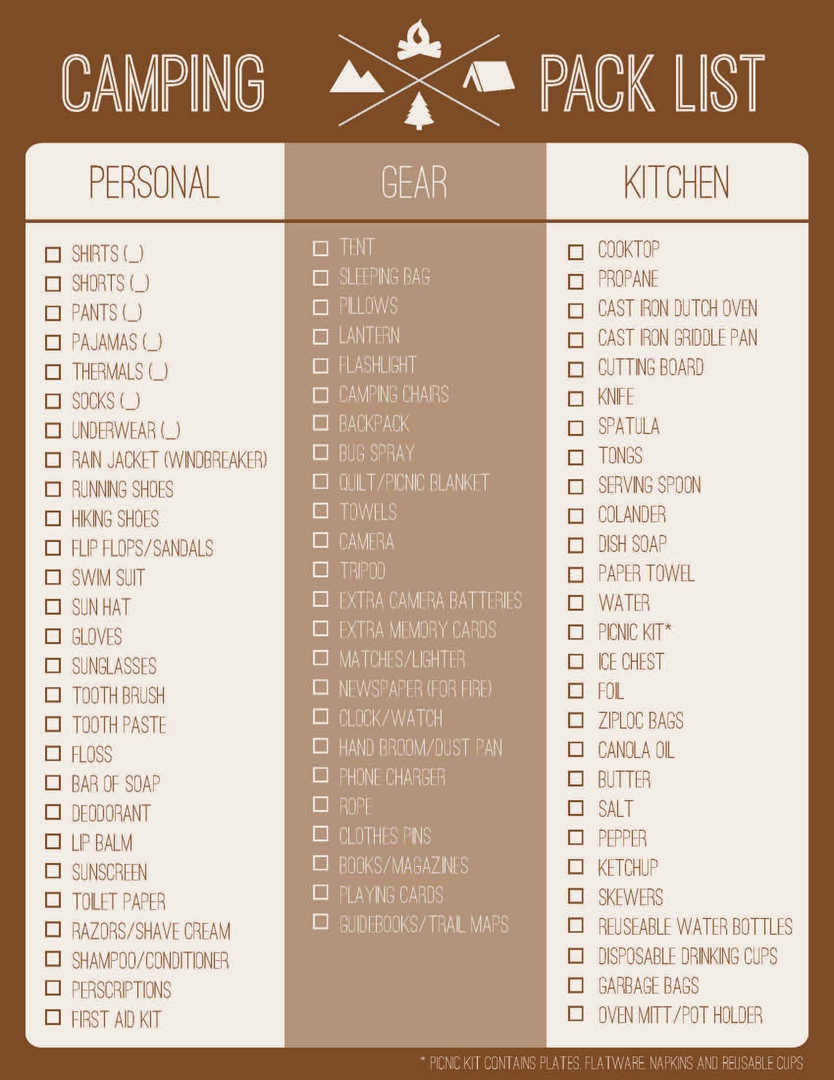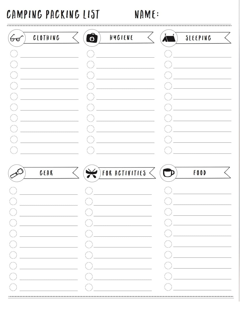 Printable Camping Packing List Template Free Download And Print For You