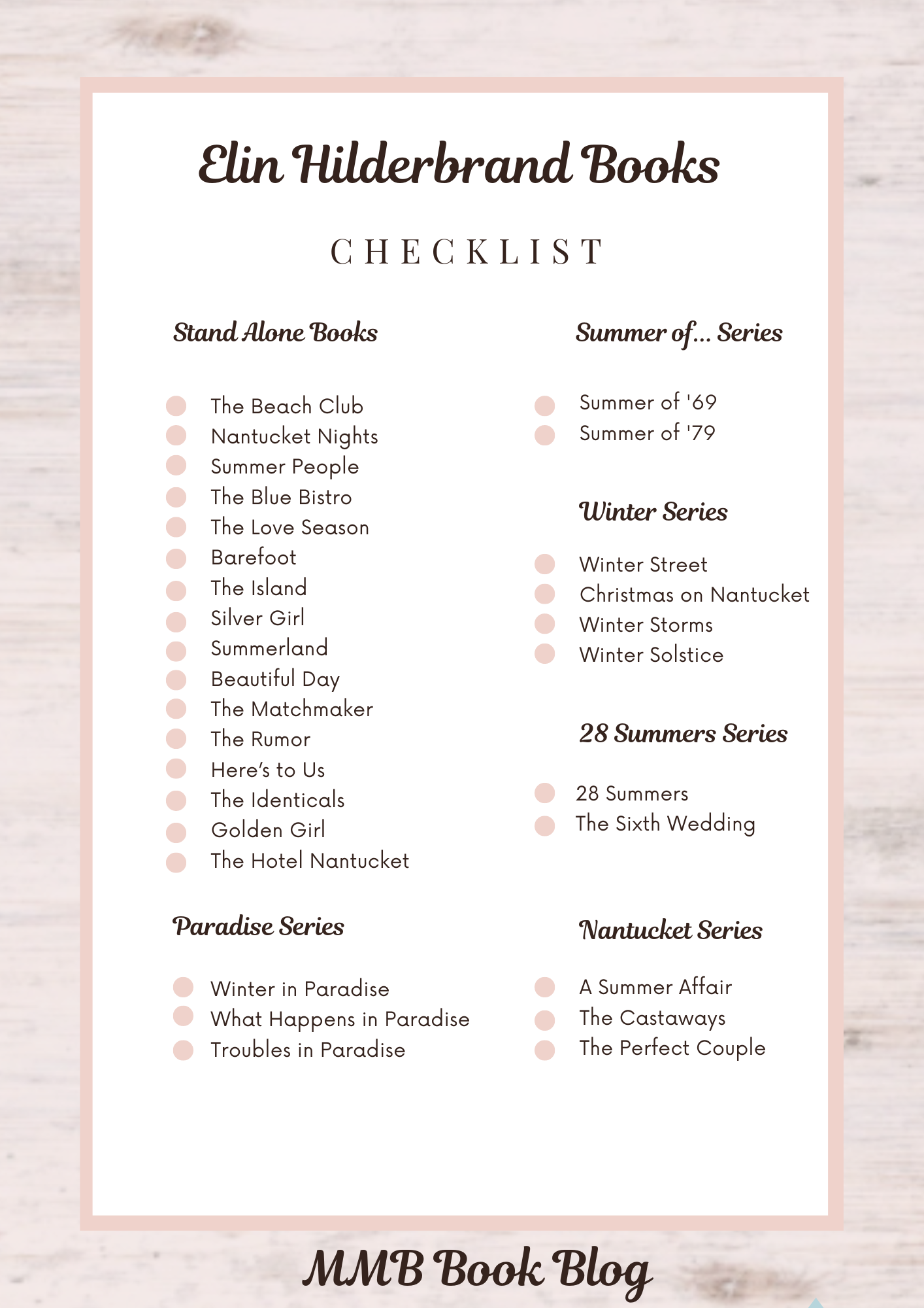 Elin Hilderbrand Books A Printable ChecklistElin Hilderbrand Books A Printable Checklist
