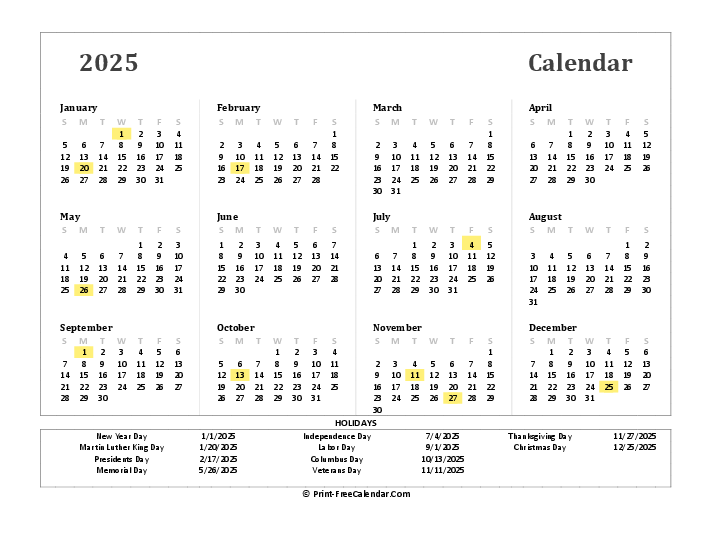 Are you looking for a convenient way to stay organized in the year 2025? Look no further than a free printable calendar with holidays! With the ability to download and print a calendar in PDF or Word format, you can easily keep track of important dates and events throughout the year.