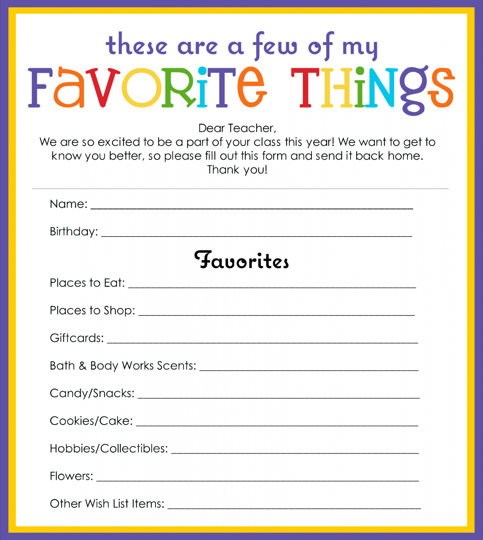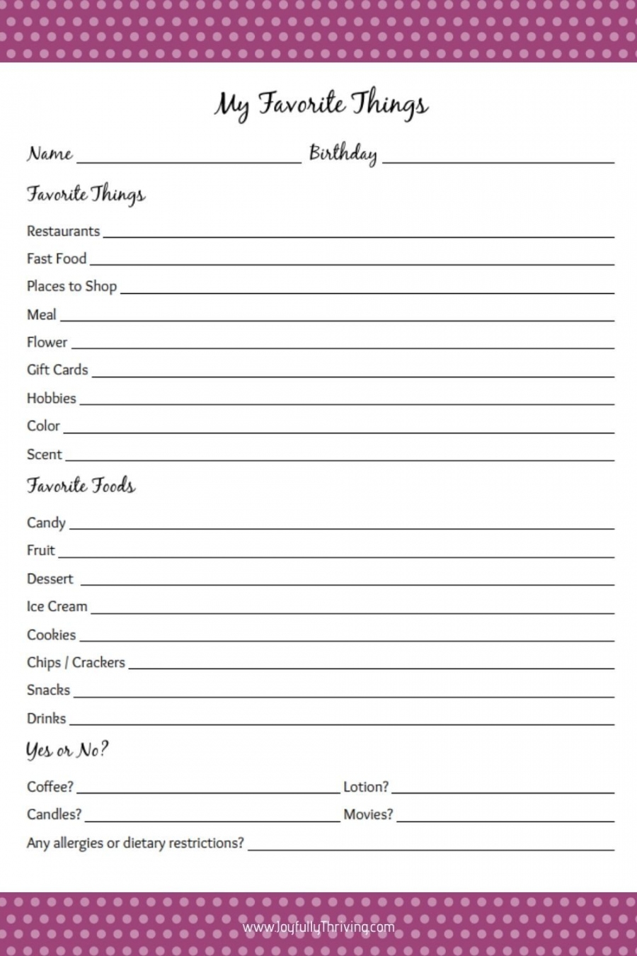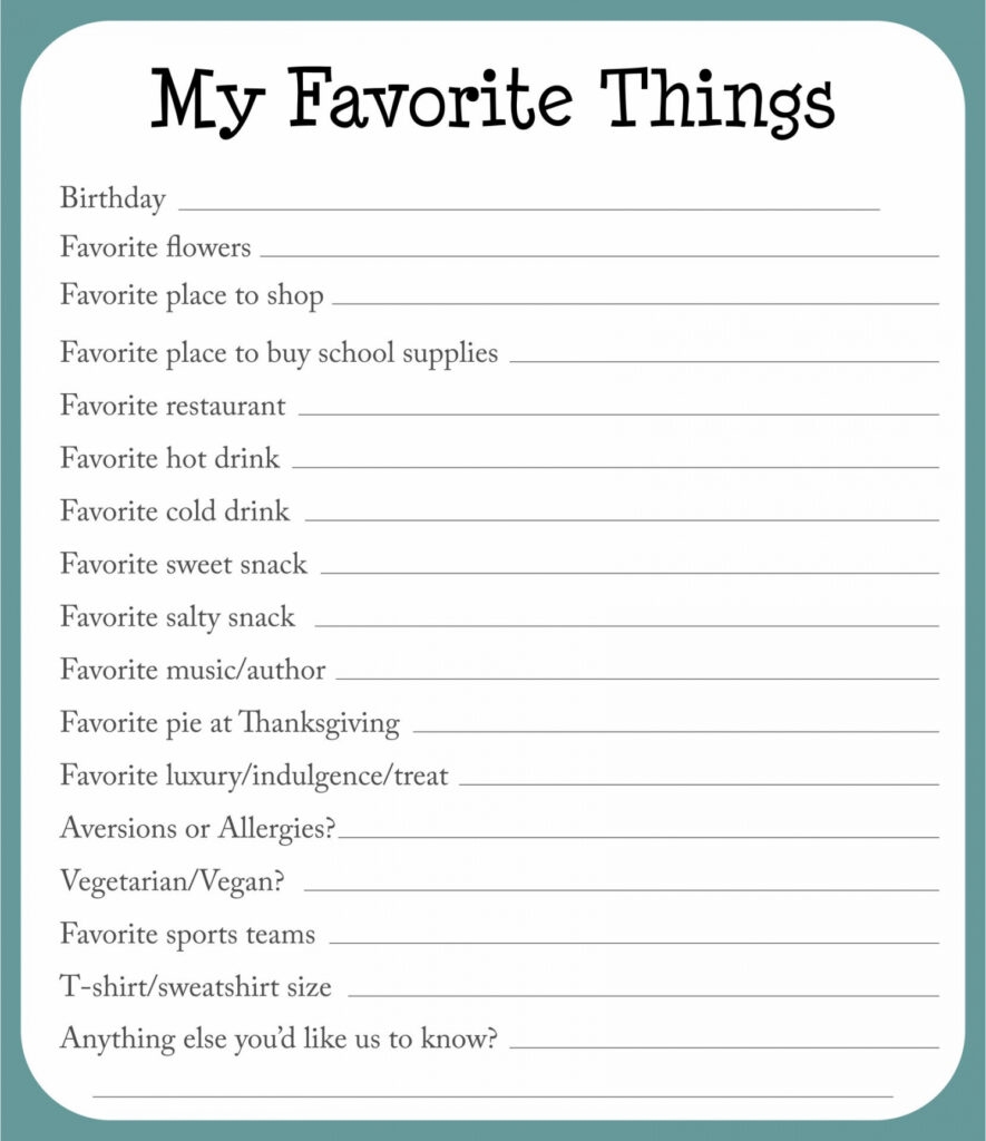 Free Printable Employee Favorite Things List Printable Template Calendar