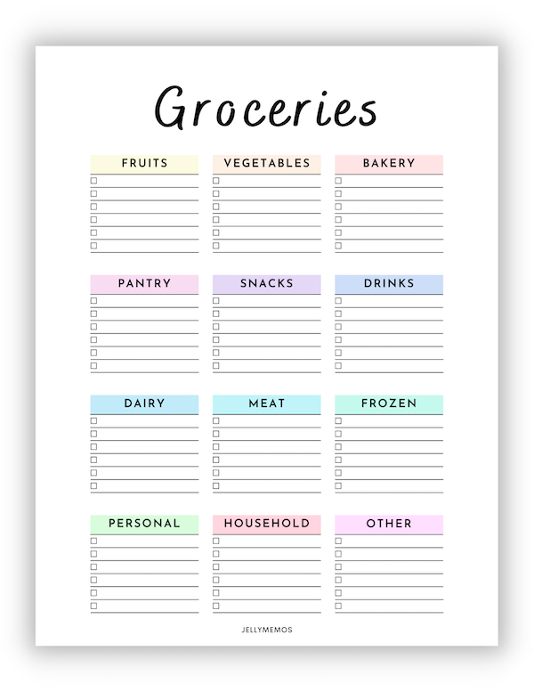 Free Printable Grocery List With Categories JellyMemosFree Printable Grocery List With Categories JellyMemos