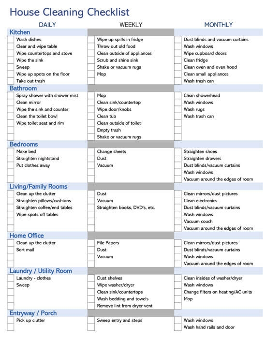Free Printable House Cleaning Schedule Cleaning Checklist