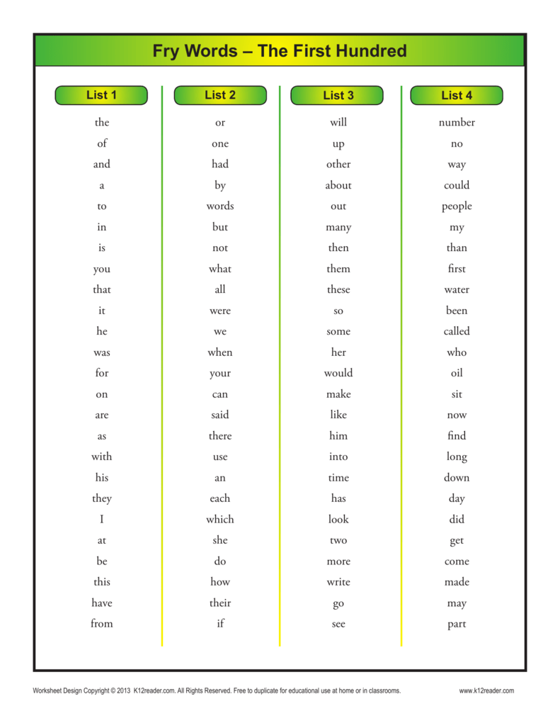 Where Can You Find Fry Word List Printable?