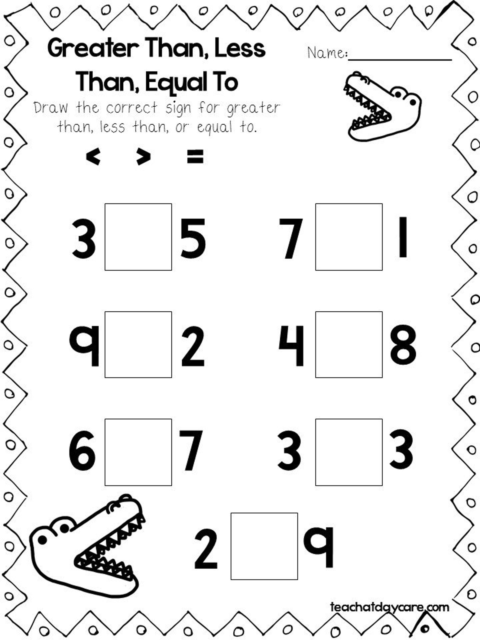 Greater Than Less Than Free Printable Worksheets