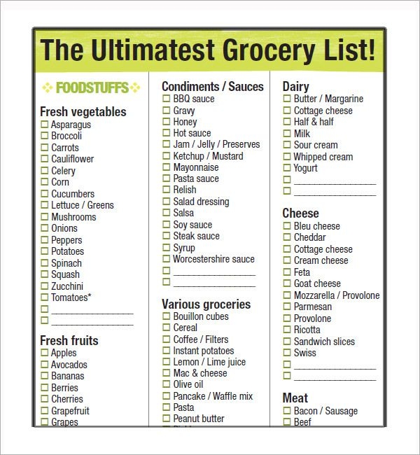 Grocery List Template Grocery Lists Printable Grocery List Template