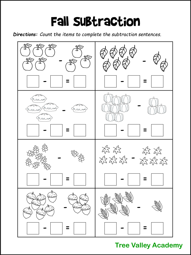 Fall Math Worksheets For Kindergarten Preschool 1st Grade