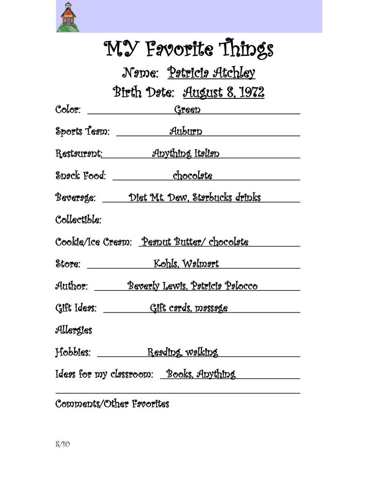 Teacher Favorite Things Form Get To Know Teacher Printable Favorite