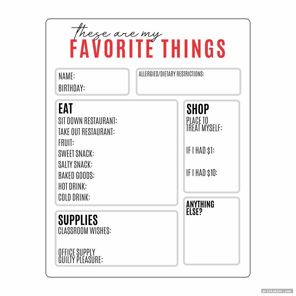 My Favorite Things Template 10 Free PDF Printables Printablee