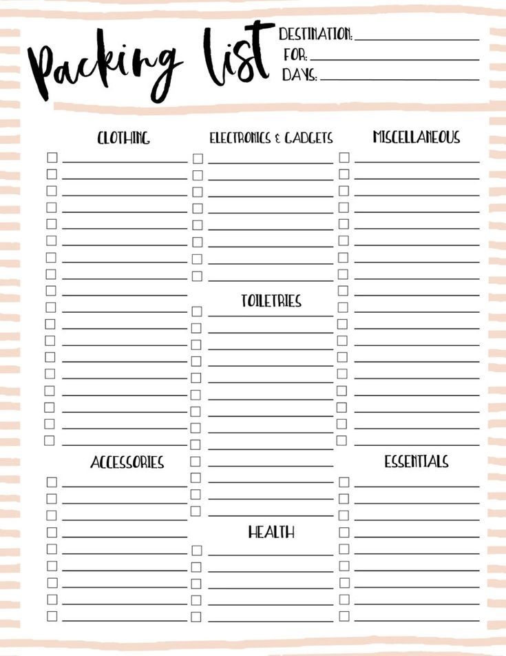 Packing Checklist Template Printable Packing List Travel Packing