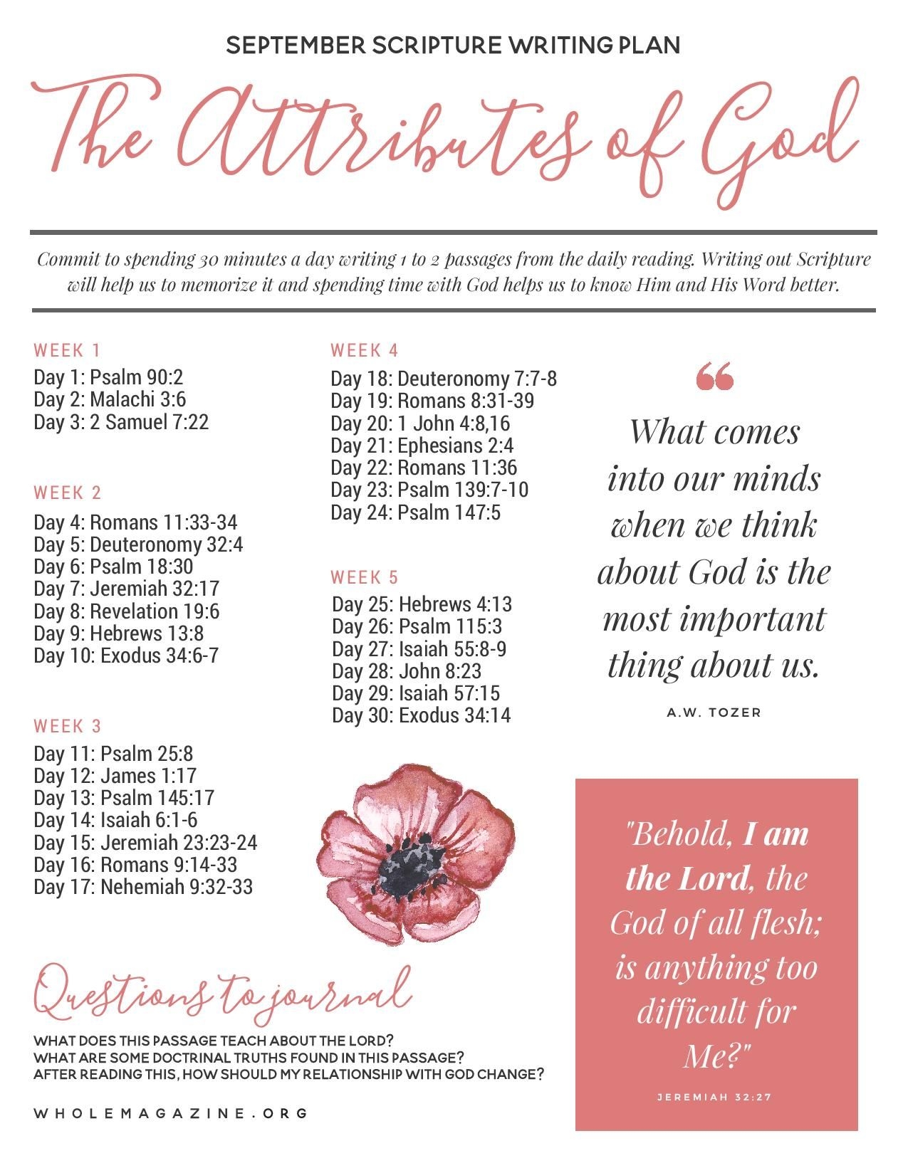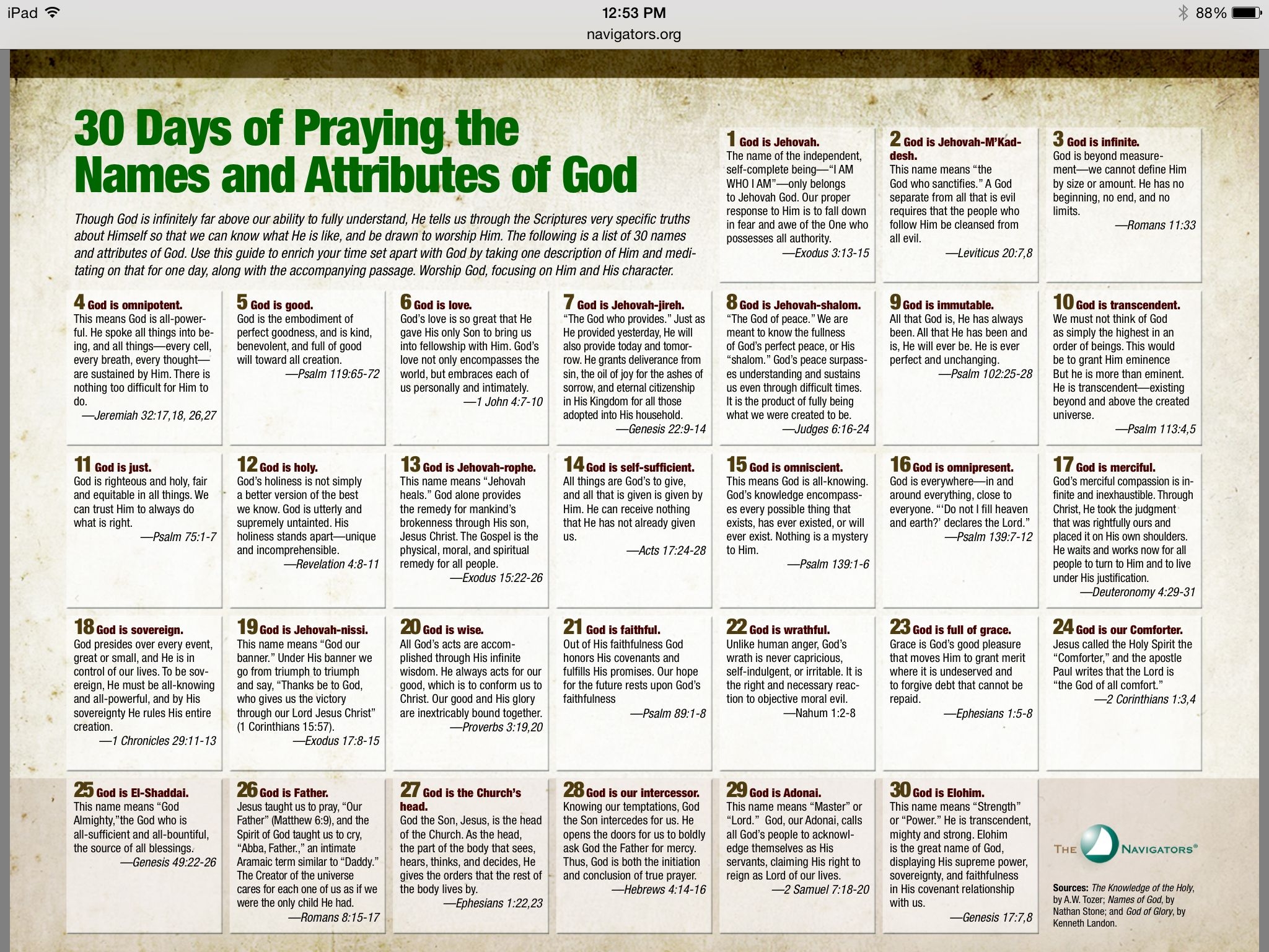 Top Sources for Printable Attributes Of God List