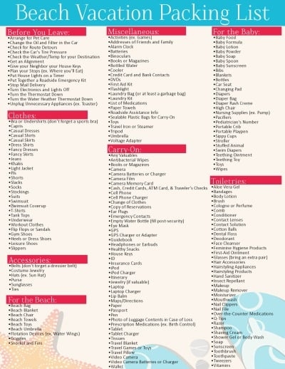 Beach Vacation Packing List Printable Printable Calendars AT A GLANCE