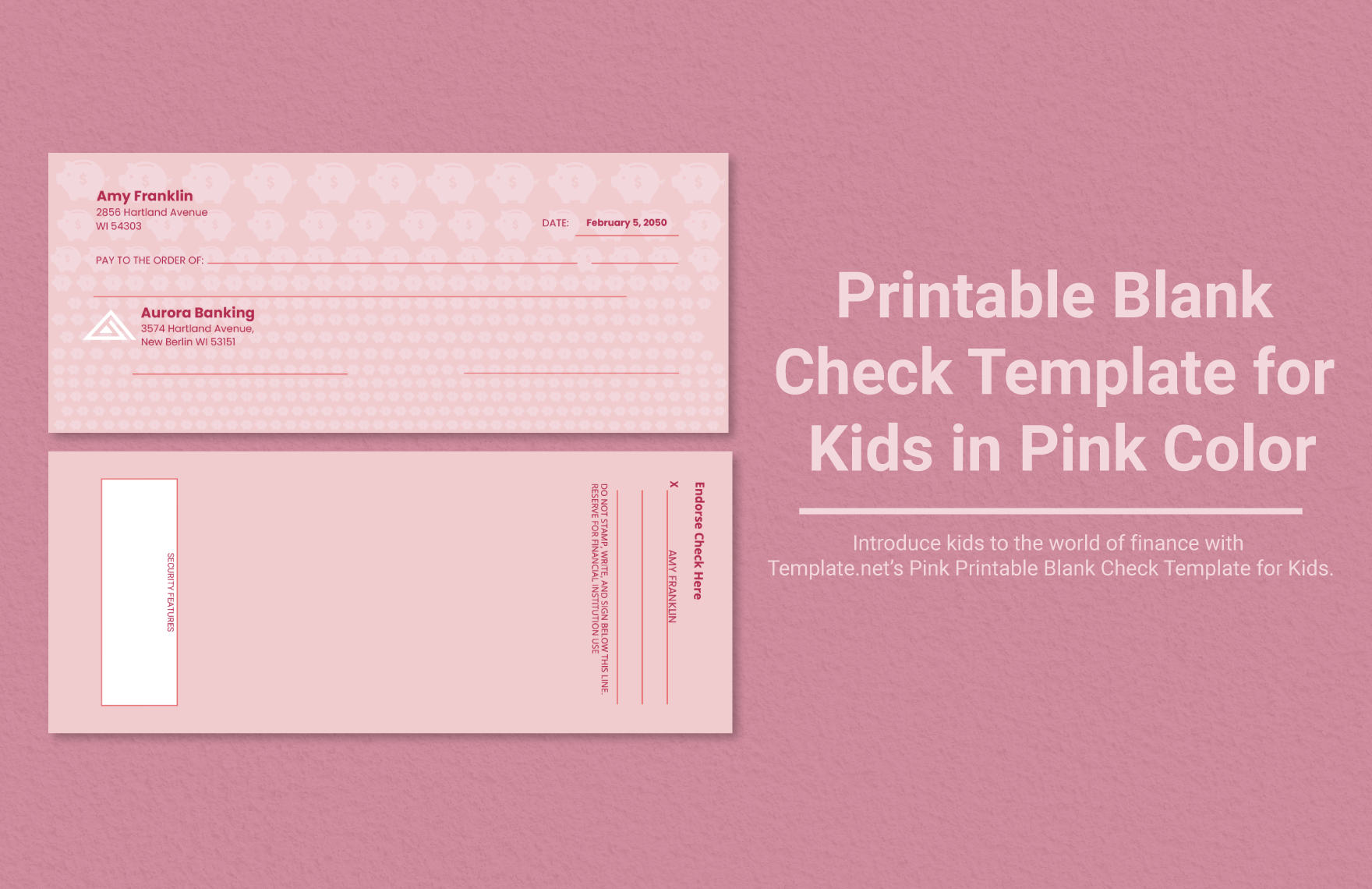 Printable Blank Check Template For Kids In Pink Color In Word