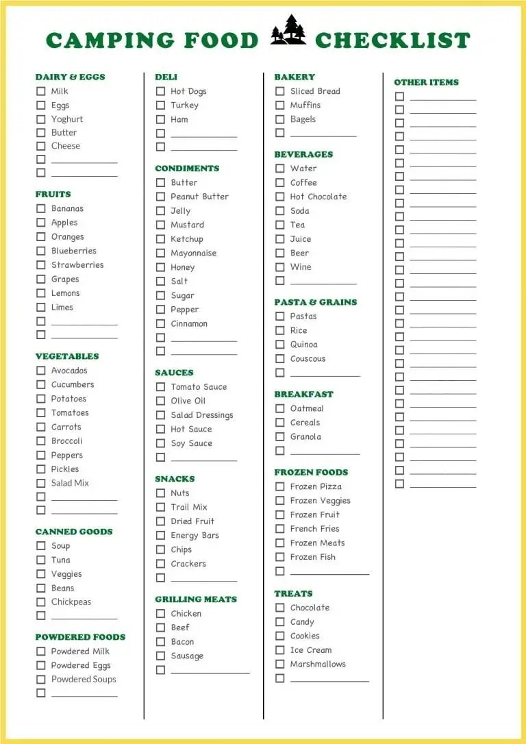 Camping Food List Printable Printable Calendars AT A GLANCE