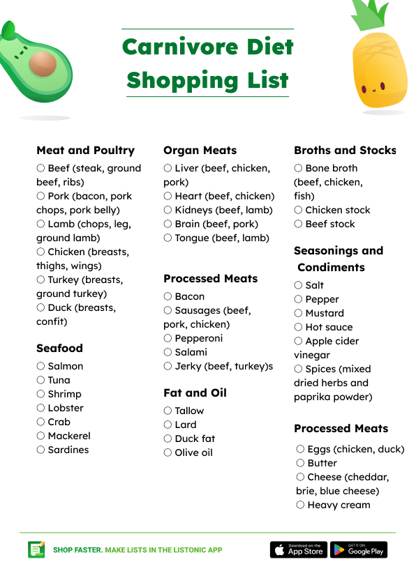 Best Places to Download Printable Carnivore Diet Food List