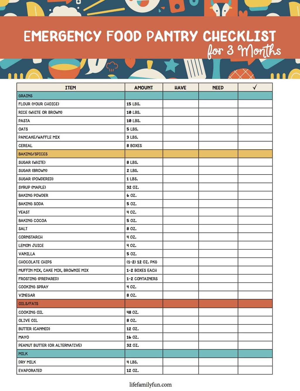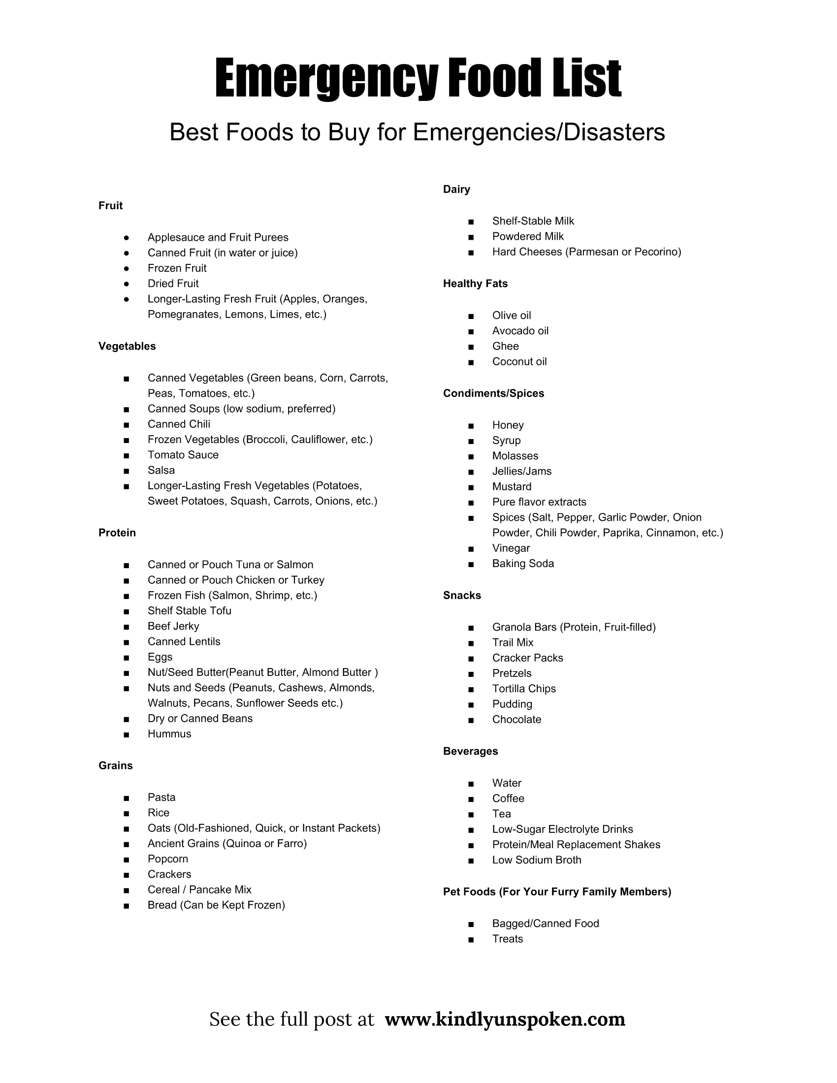 Download and Print Printable Emergency Food List
