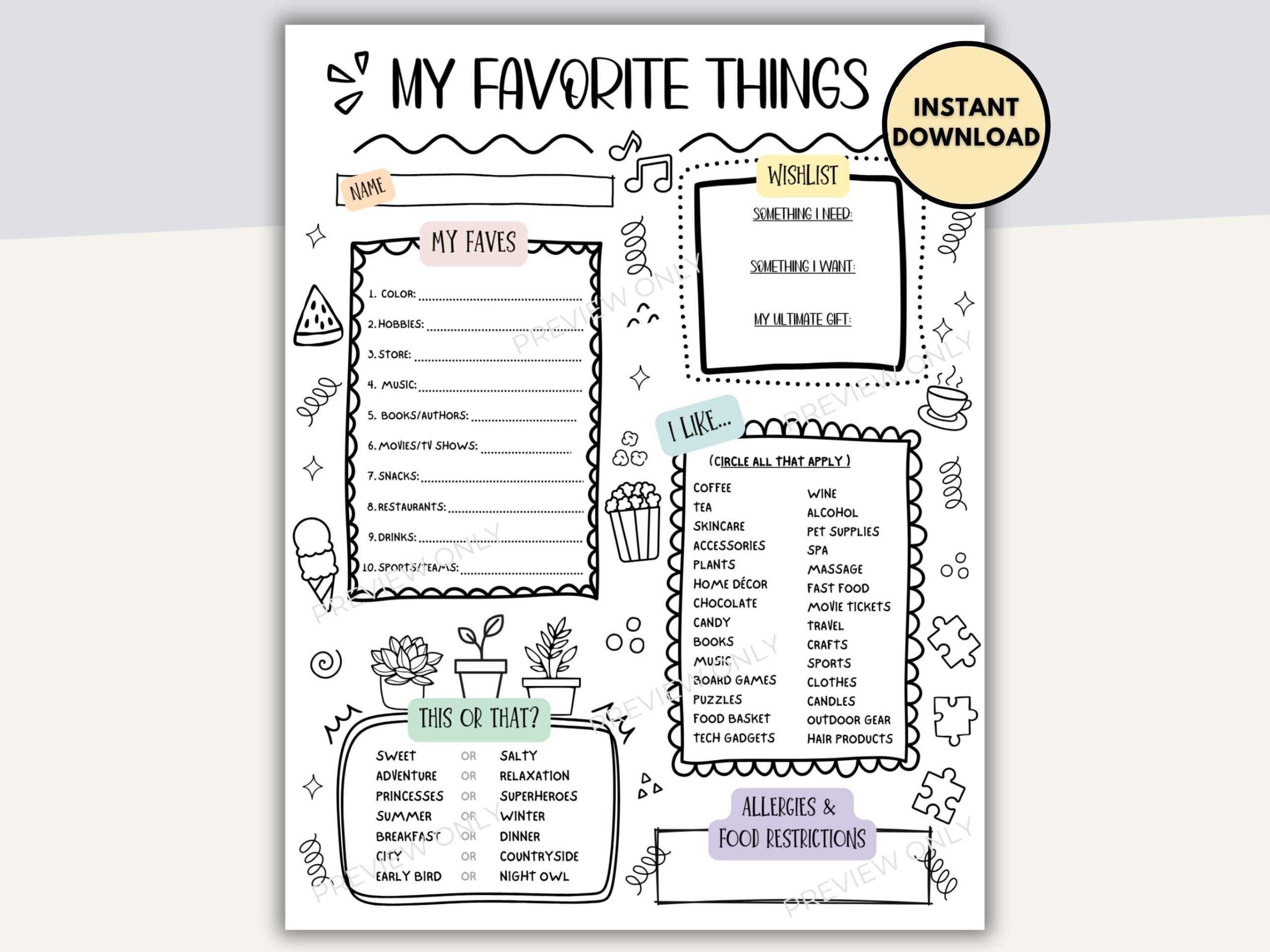 Best Places to Download Printable Favorite Things List