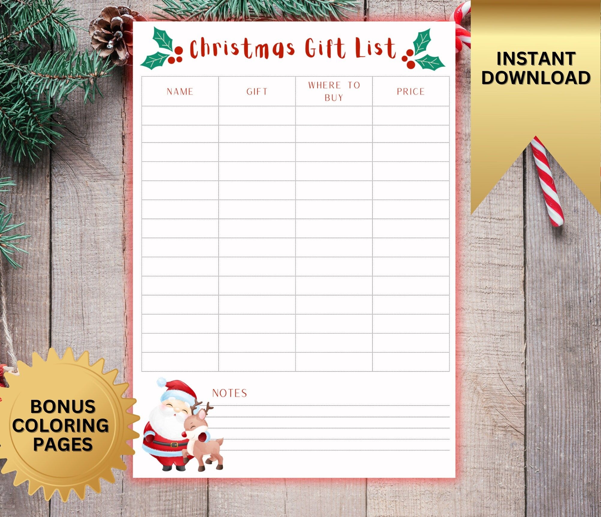 Christmas List Christmas Gift List Christmas Wish List Printable Easy