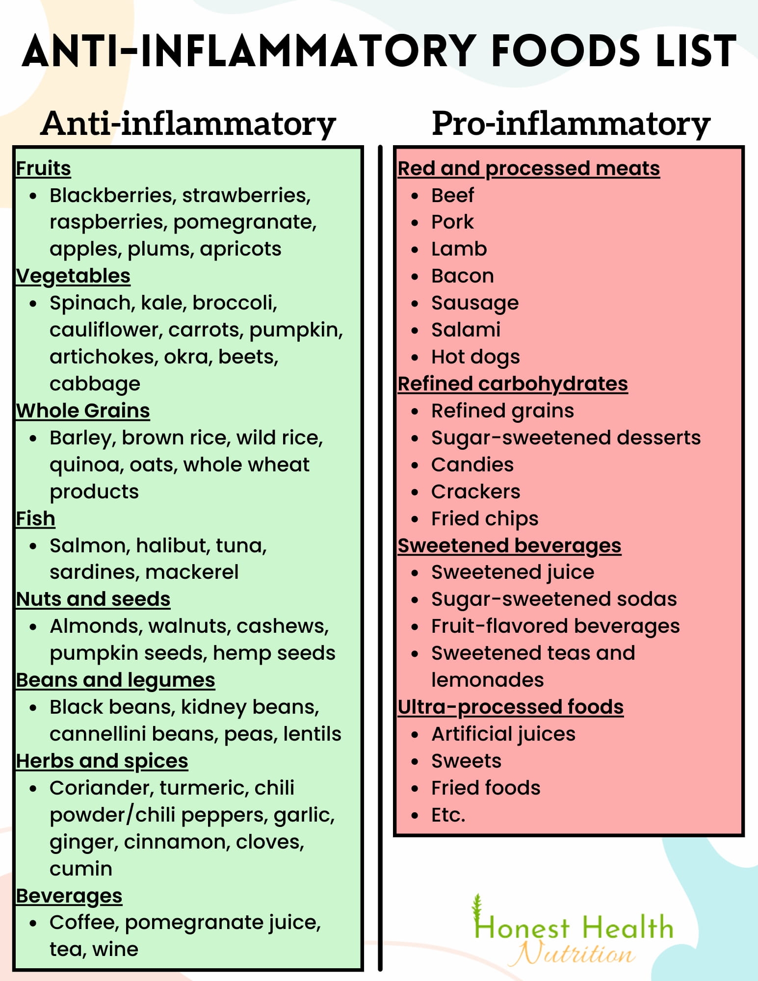 Anti Inflammatory Foods List PDF Honest Health Nutrition