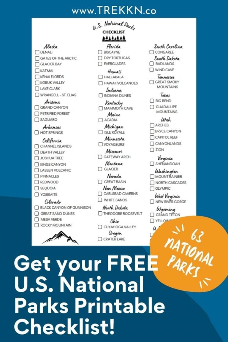 CHECKLIST US National Parks List Printable Download 57 OFF