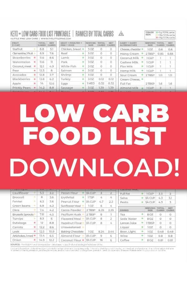 Free Easy Low Carb Food List Printable FreebieFox