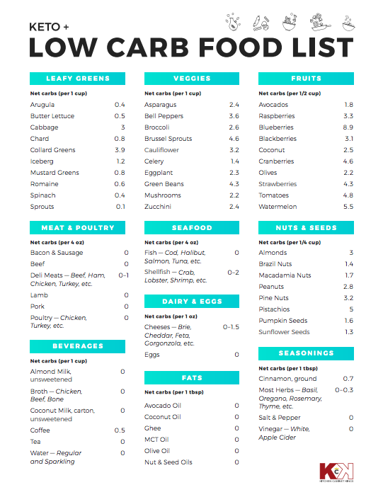 Low Carb Food List Printable Carb Chart Keto Size Me