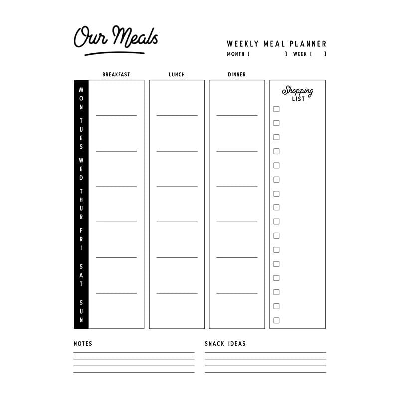 A printable meal planner is a simple tool that allows you to map out your meals for the week in advance. It typically includes space to write down breakfast, lunch, dinner, and snack options for each day. With a meal planner, you can easily see what ingredients you need to buy at the store and avoid last-minute trips to grab missing items. By having a plan in place, you can also ensure that you are eating a balanced and nutritious diet.
