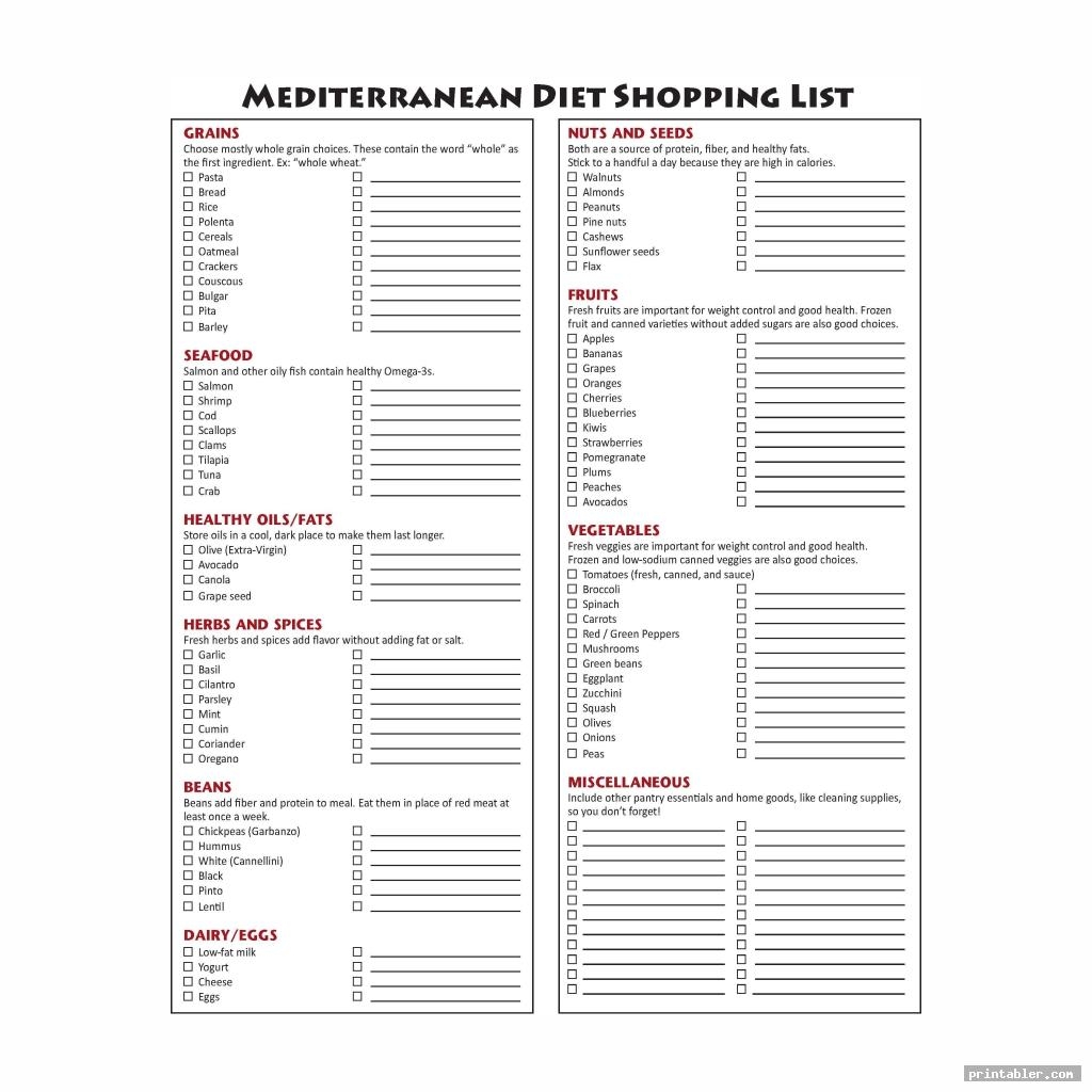 Printable Mediterranean Diet Food List Free Printable Template