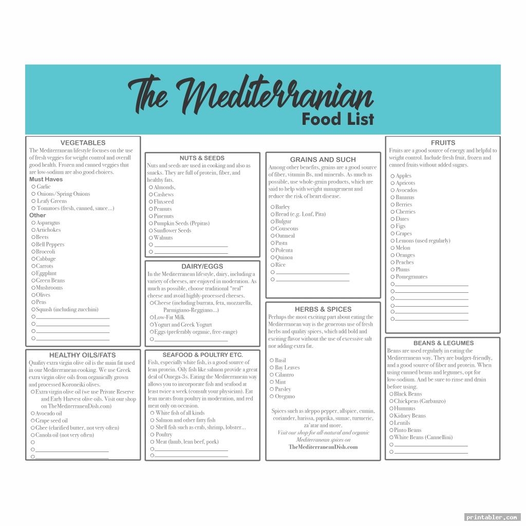 Easily Download and Print Printable Mediterranean Diet Food List