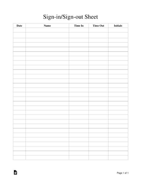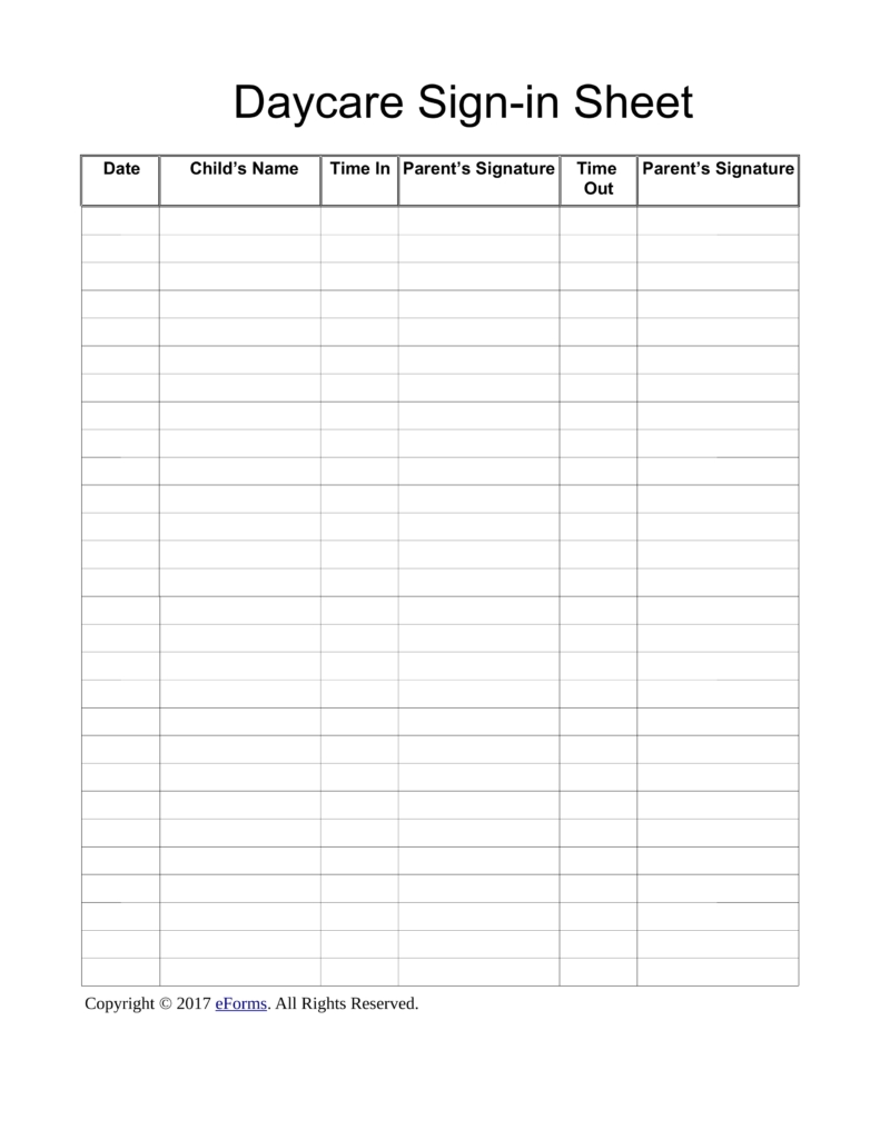 Daycare Sign In Sheets Printable Shop Fresh