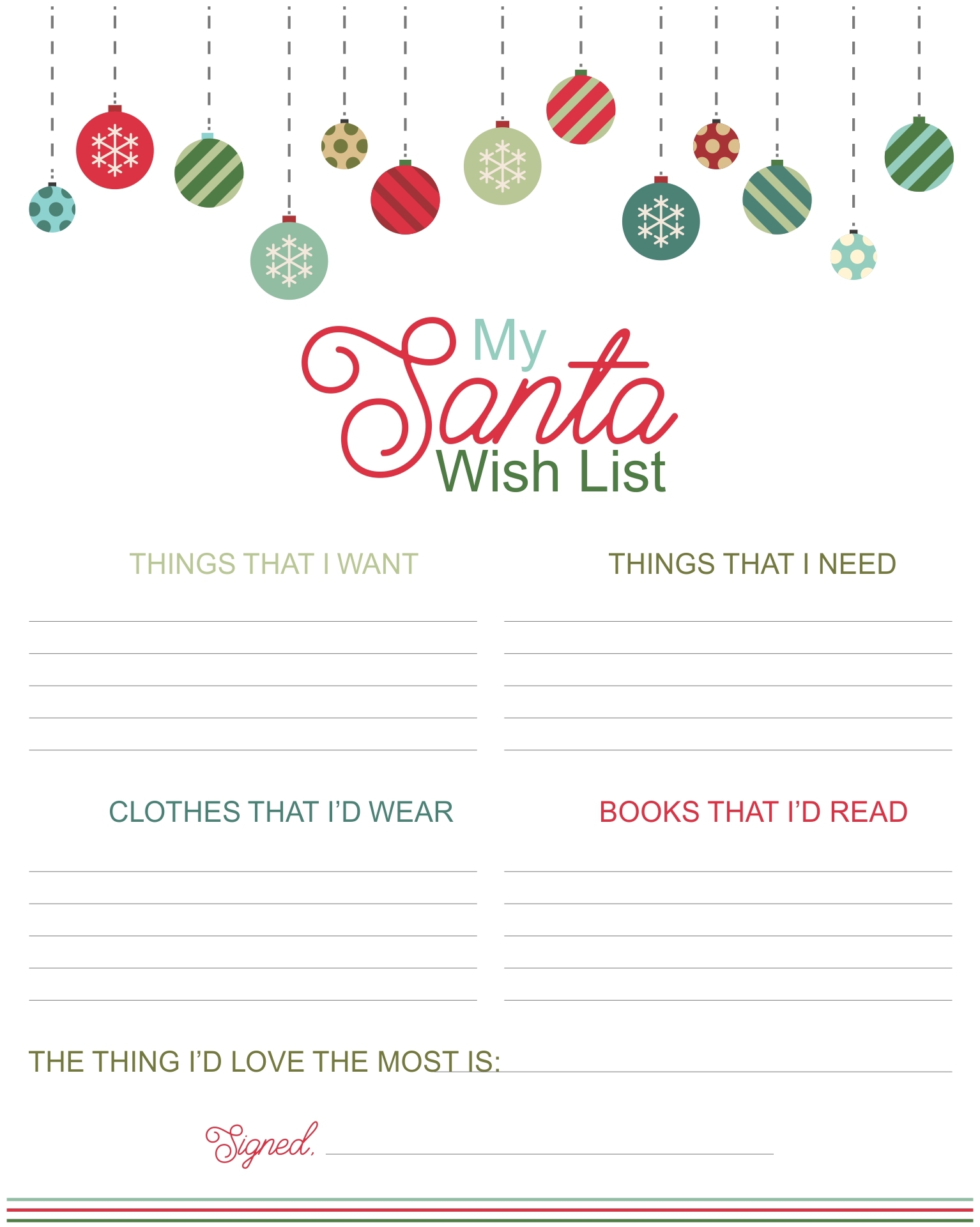 Printable Wish List For Christmas