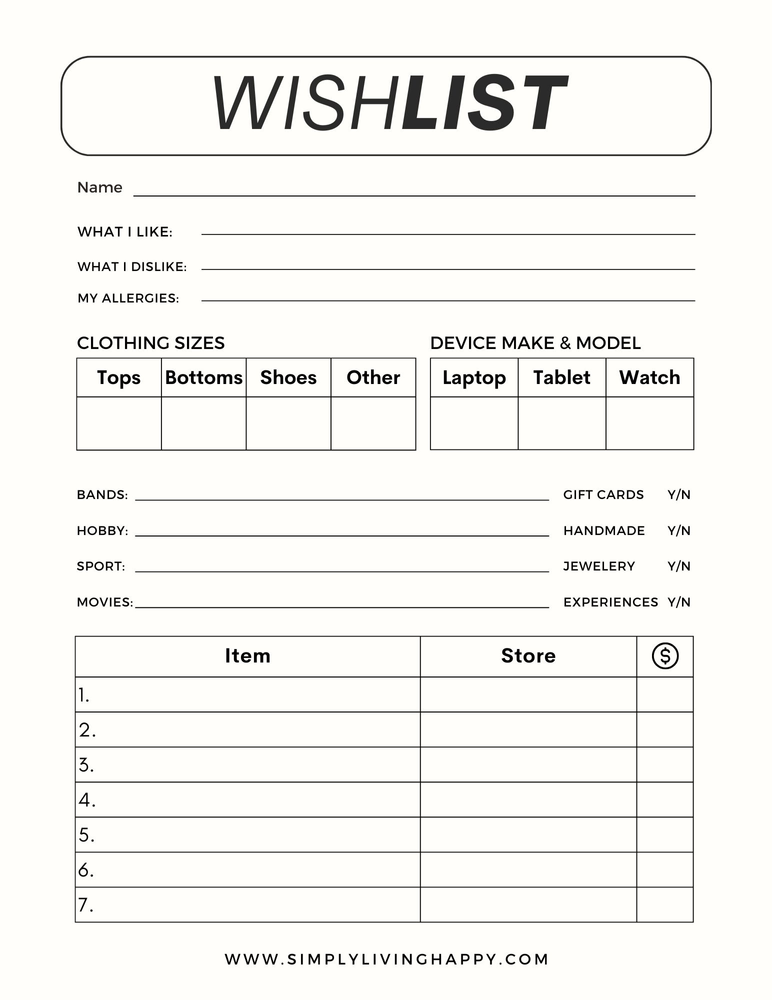 Download and Print Printable Wish List Template