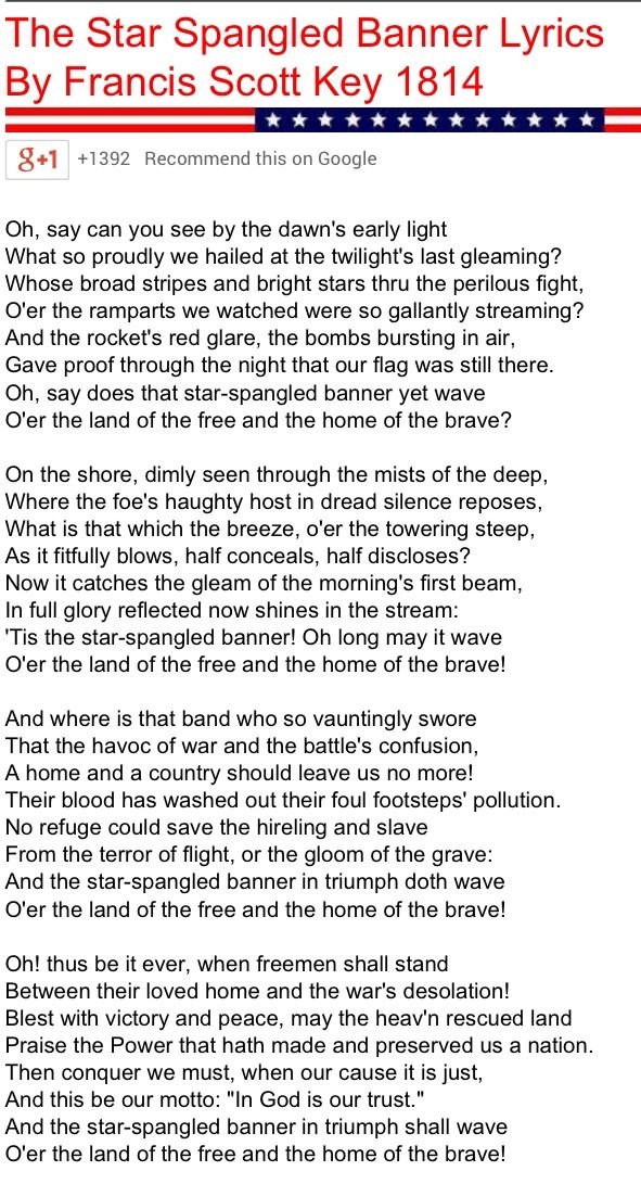 Quickly Access and Print Printable Words To The Star Spangled Banner