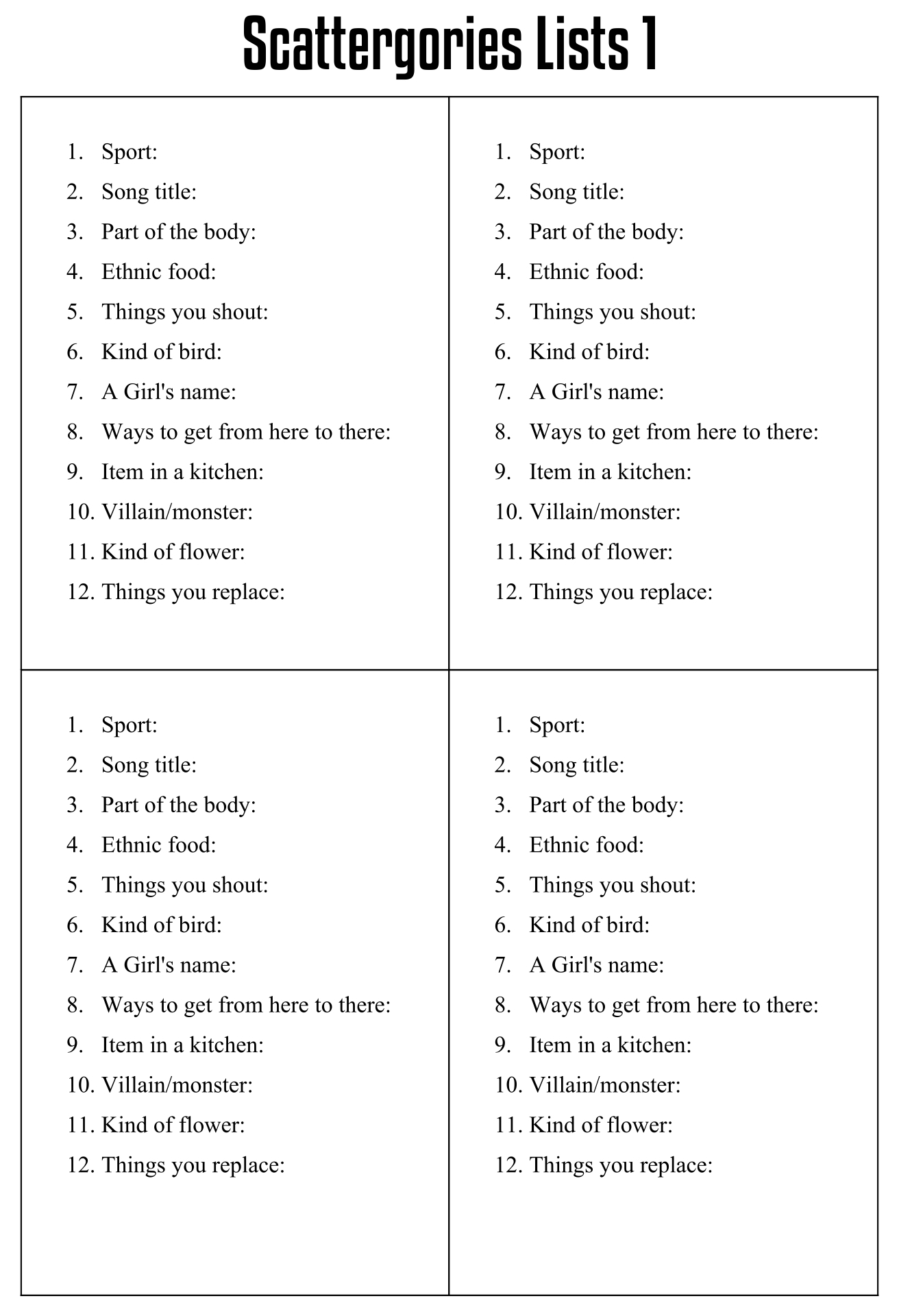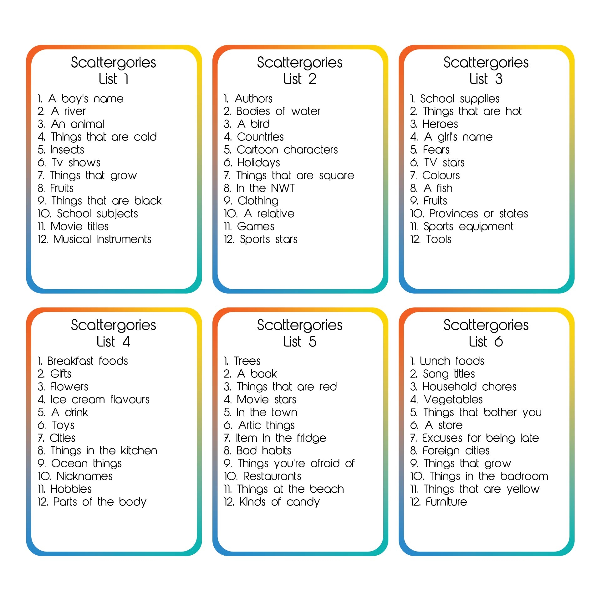 Scattergories Lists Printable Camsretpa