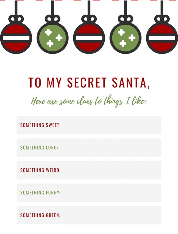 Secret Santa Wish List Printable Get Organized For The Holidays Secret Santa Wish List Printable Get Organized For The Holidays