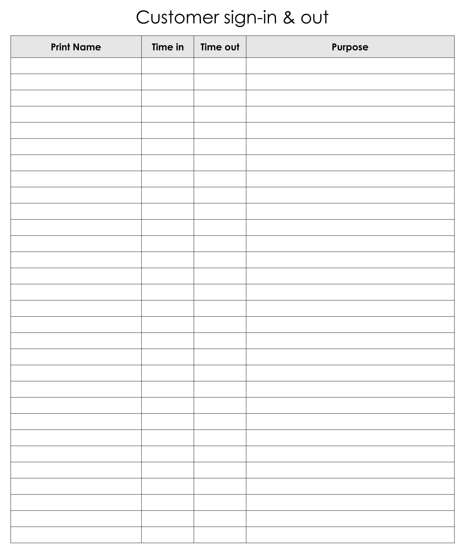 Sign in sheets are commonly used in various settings such as schools, offices, events, and meetings to keep track of attendees. Having a printable sign-in sheet makes the process more efficient and organized. These sheets can be customized to include specific fields like name, date, time in/out, and purpose of visit.