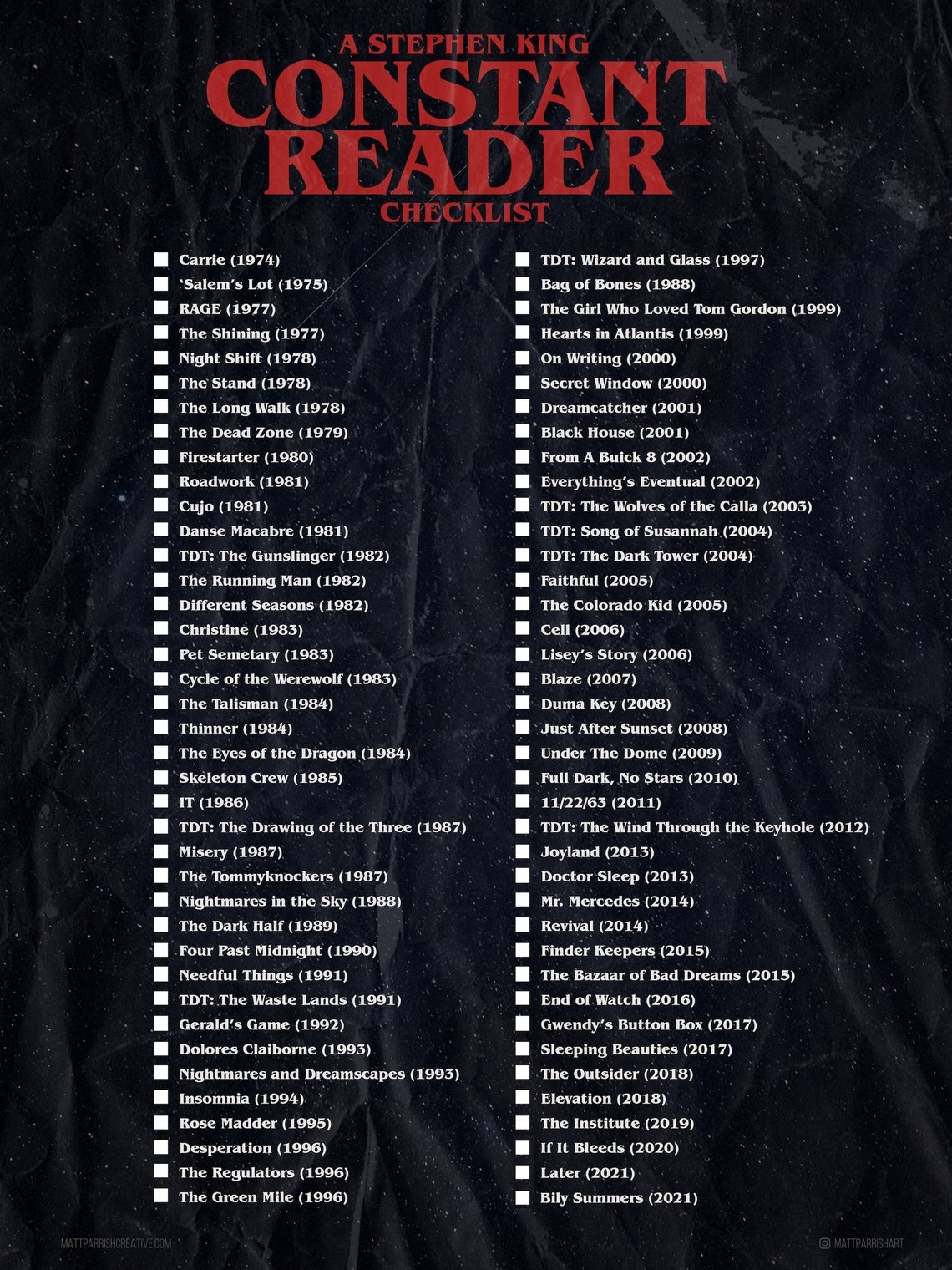 His books have been adapted into numerous films and television series, solidifying his place as a master of the horror genre. If you’re a fan of Stephen King or looking to dive into his work for the first time, having a printable list of his books in order can be incredibly helpful.
