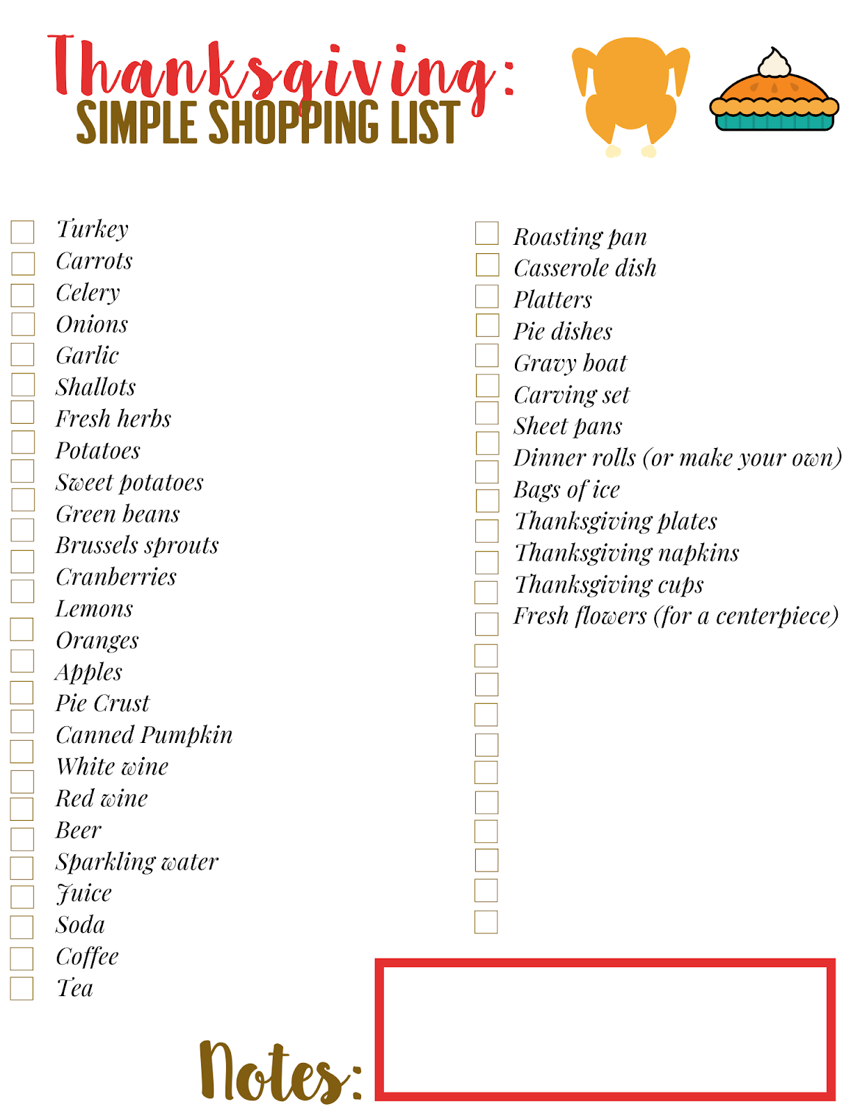 Thanksgiving Dinner Shopping List Printable