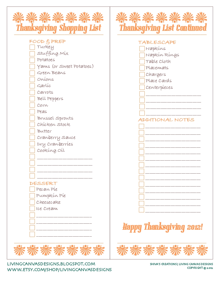 Best Places to Download Thanksgiving Dinner Shopping List Printable