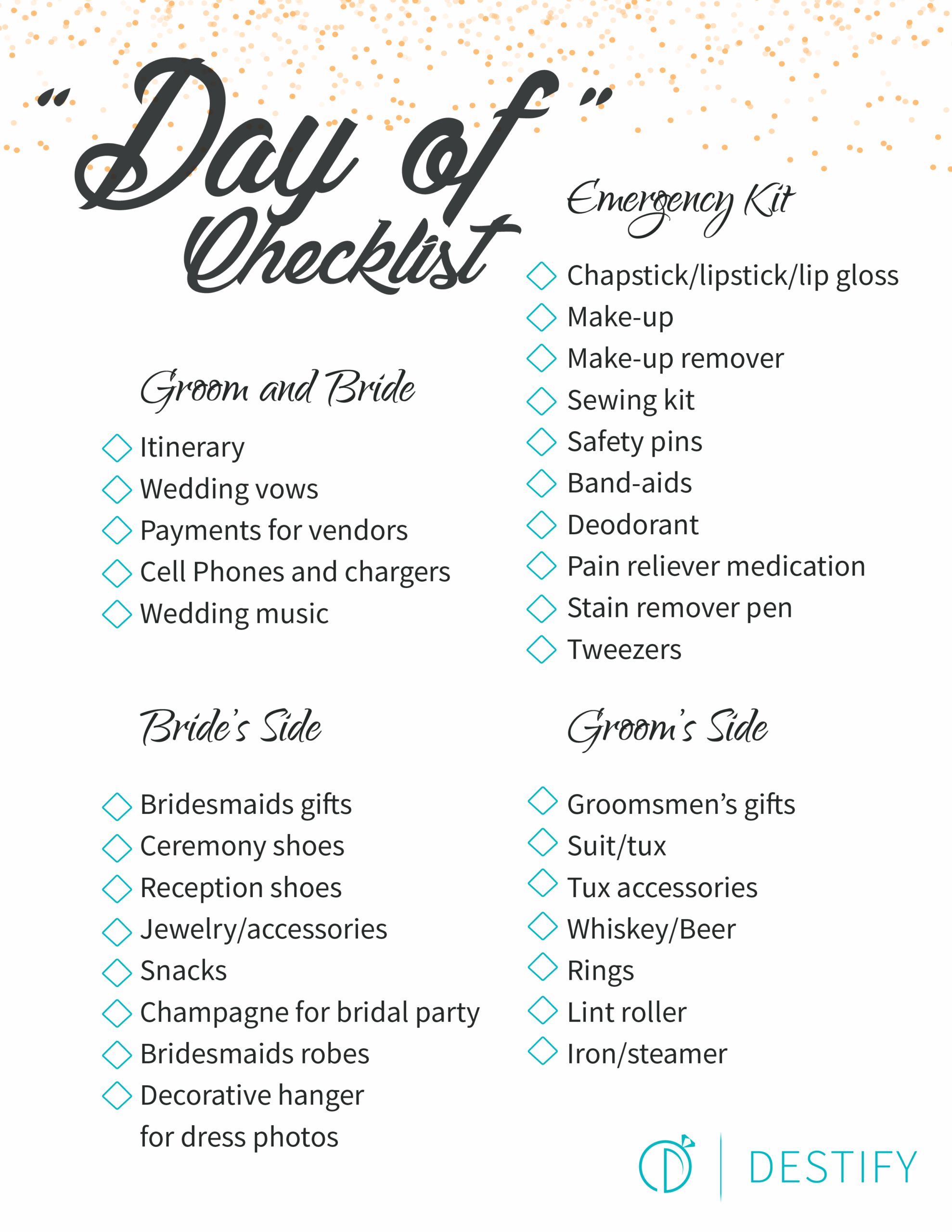 Day Of Wedding Checklist Printable Free Printable Wedding