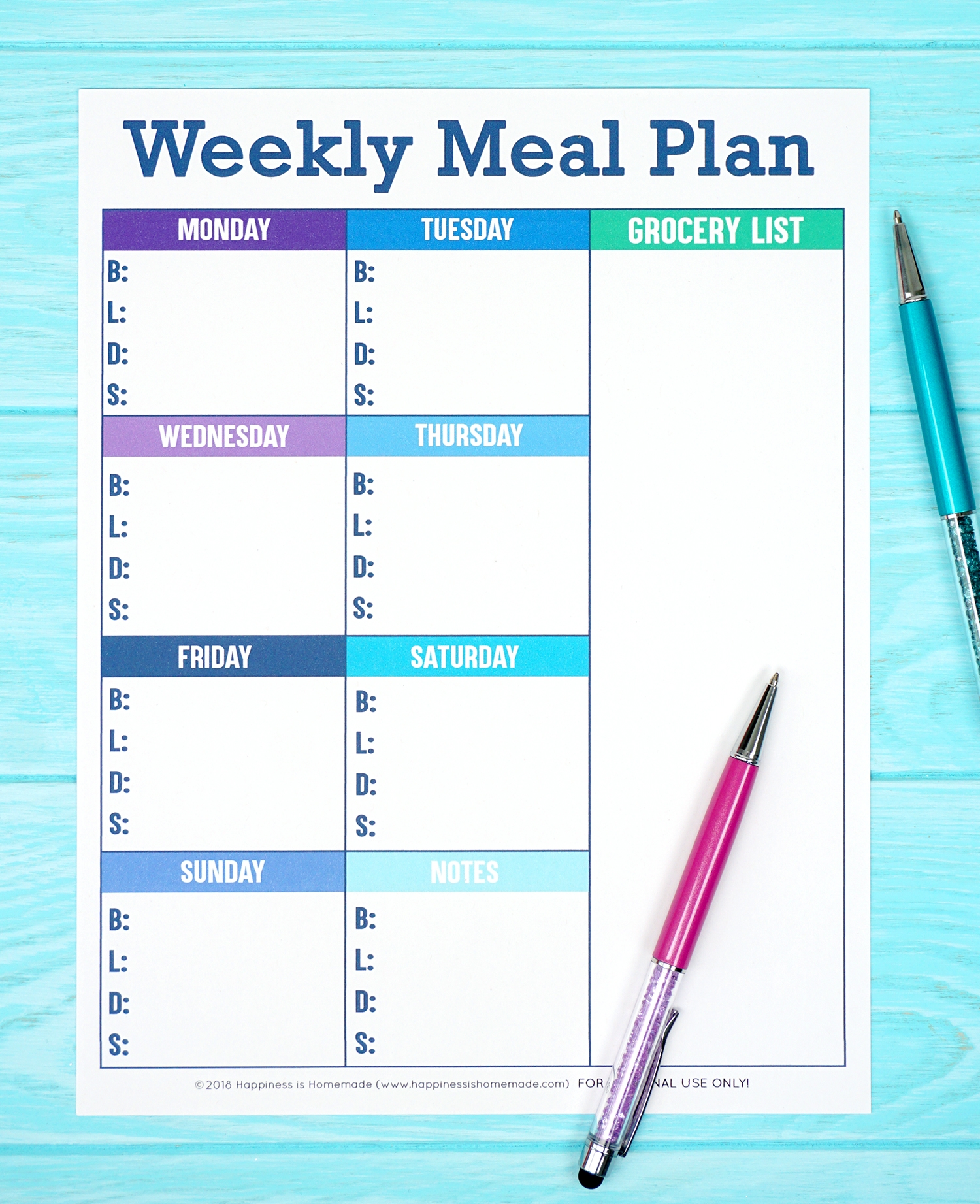 Printable Weekly Meal Planner Template Happiness Is Homemade