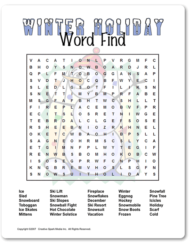 4 Winter Holiday Word Search Printables For Kids
