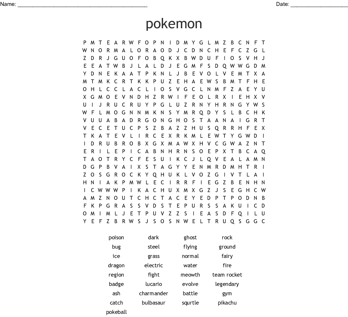 Pokemon Word Search Free Printable Word Search Maker