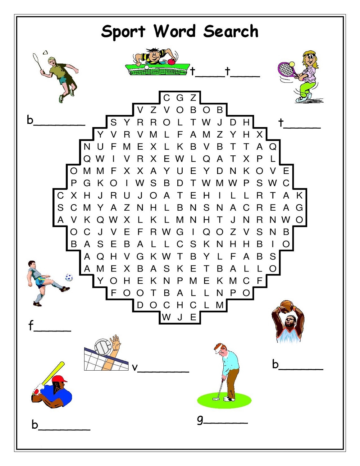Printable Word Search Sports Activity Shelter