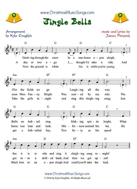 Jingle Bells Printable Lyrics Origins And Video