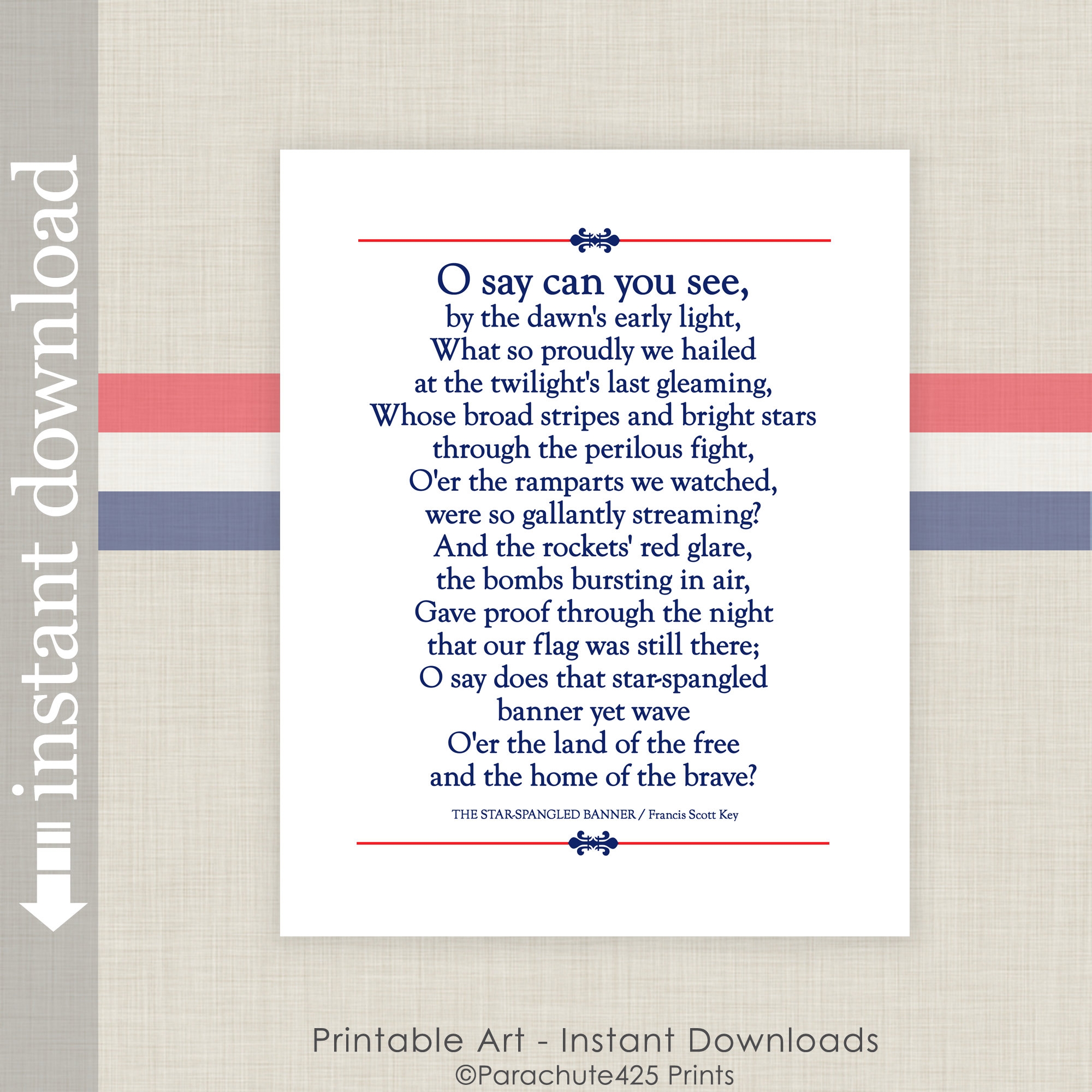 Star Spangled Banner Printable Lyrics EtsyStar Spangled Banner Printable Lyrics Etsy