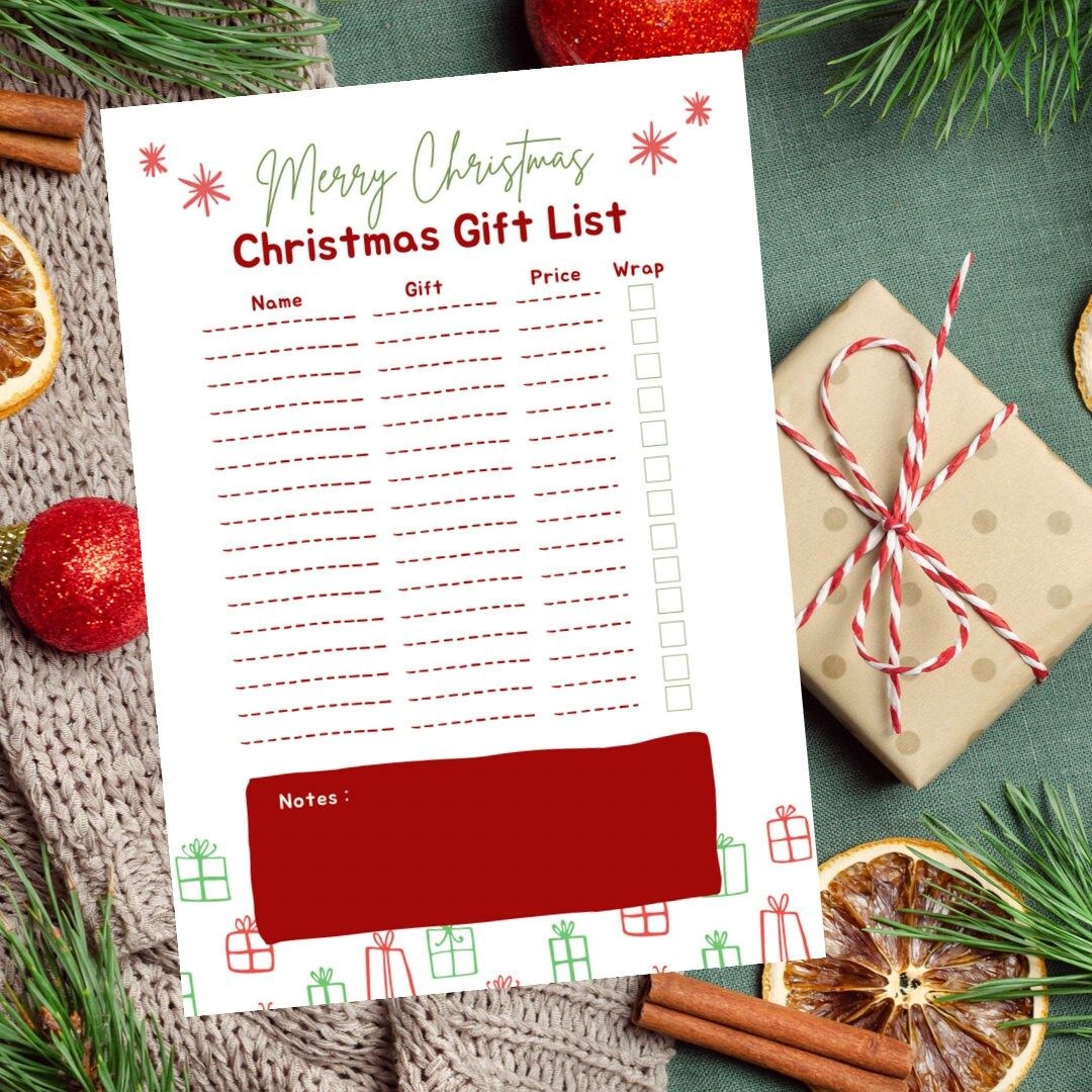 Christmas Gift List A4 Digital Download Christmas List Pdf Xmas